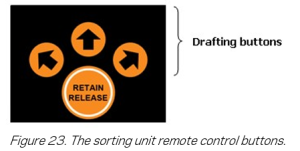 To control the sorting direction the operator must set up appropriate weight limits or a sorting list in the weigh scale indicator as the remote can’t be used with 5-way or 7-way drafting.