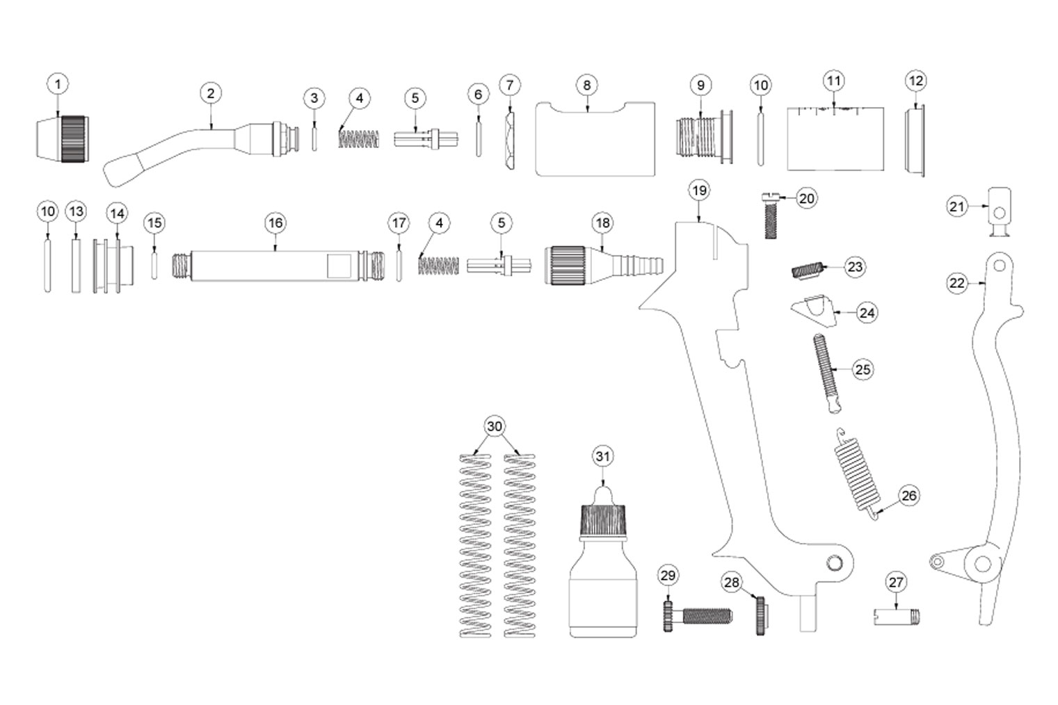 | 1. Nozzle Nut | 12. Barrel Spacer Bush | 23. Spring Adjuster Nut |